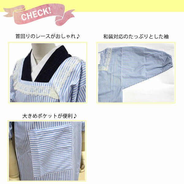■和装の袖がかさばらない、たっぷりとした袖 ■大きめのポケットが便利 背中は、紐で2か所結びます。