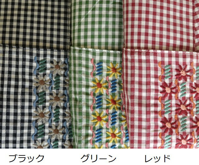 <生地> 先染のギンガムチェック(中格子)の カジュアルテイスト&胸の花の刺繍が バランスが素敵です。